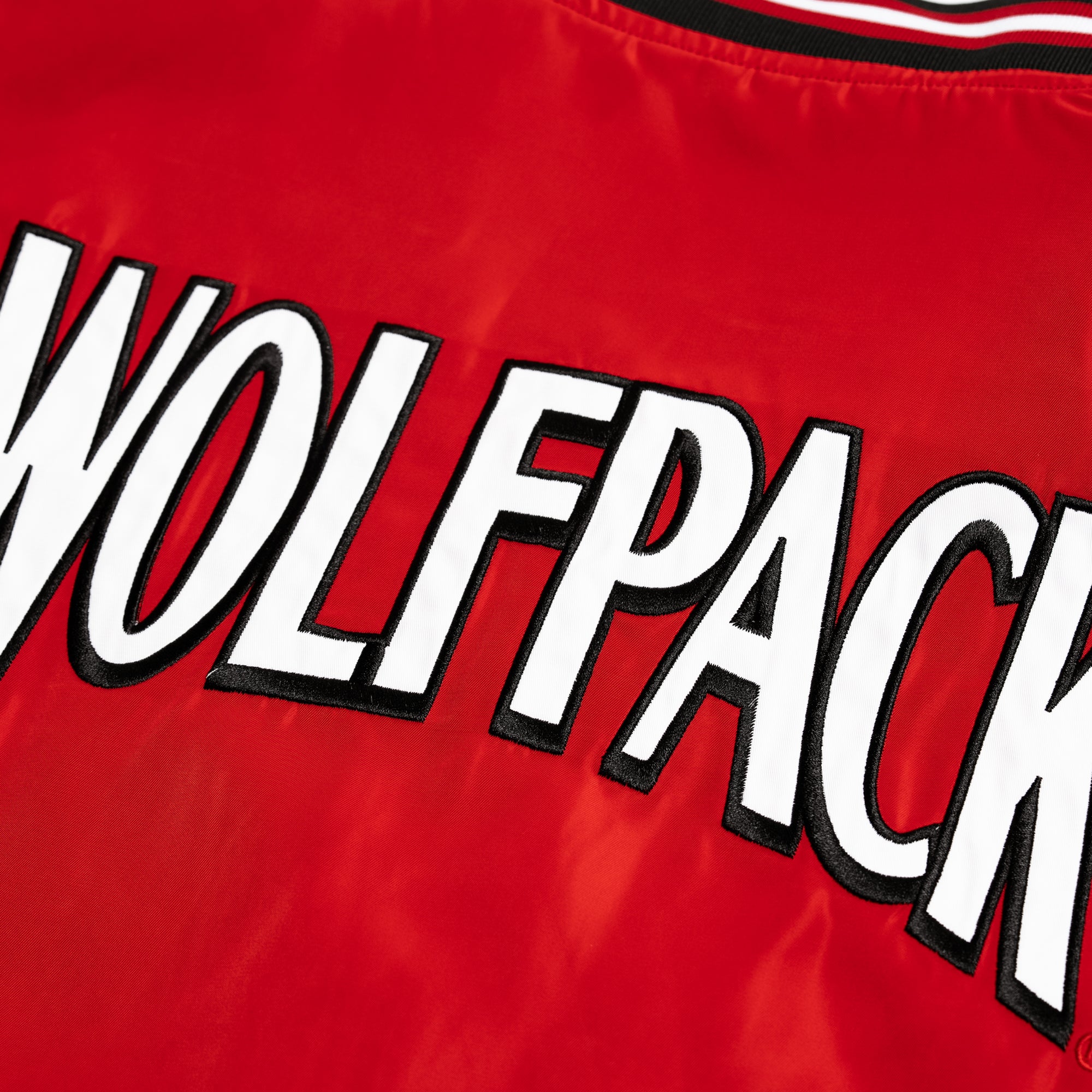 This slobbering wolf made his debut in 1967, alongside the vintage strutting wolf logo NC State still uses today. The beloved mark came back as an official throwback logo in 2021, ready, as always, to show off all that Pack Power. Paired with this retro "Wolfpack" wordmark, this vintage bomber jacket nods to NC State's iconic legacy. Brought to you in partnership with College Vault.